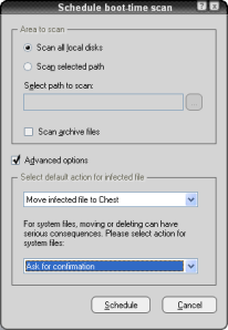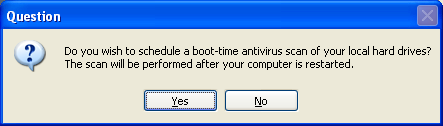 Clicking the Schedule button at this point will cause Avast! to run before Windows starts the next time your PC is rebooted.