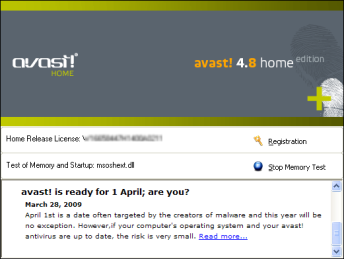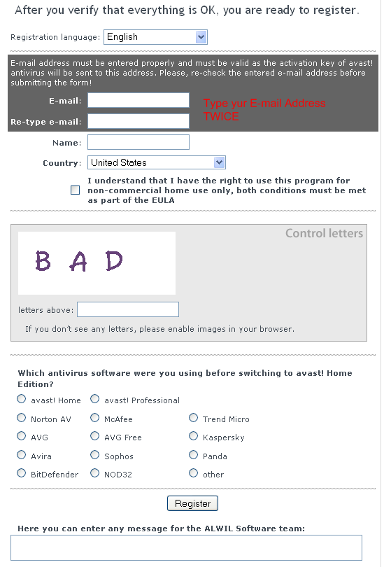 Users can get to the registration web site several different ways. They can click on the “avast! Home Registration page” link, which will open the site in their default web browser.