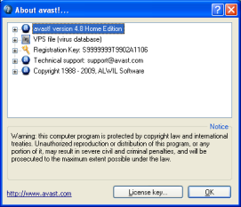 … and copy/paste in the license key you were E-mailed. Or type it in. Whatever. I blurred mine out, since the Avast! license agreement technically does say that each key is good for one installation. Click the OK button.