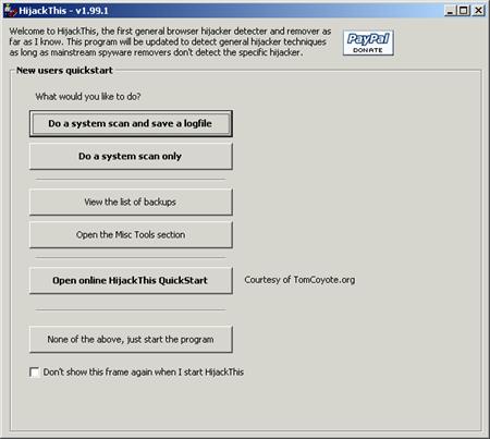 Finally, None of the above, just start the program is the standard means to actually use Hijack This. This is the option that spyware-hunters will normally want.